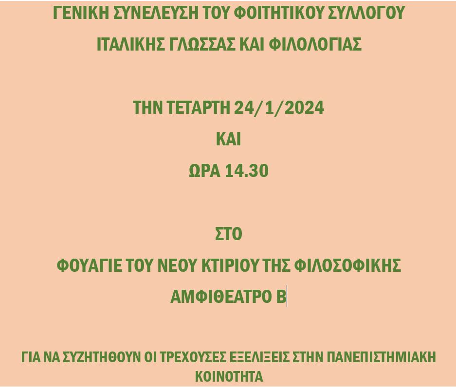 1η ΓΕΝΙΚΗ ΣΥΝΕΛΕΥΣΗ ΤΟΥ ΣΥΛΛΟΓΟΥ ΦΟΙΤΗΤΩΝ 2023-24
